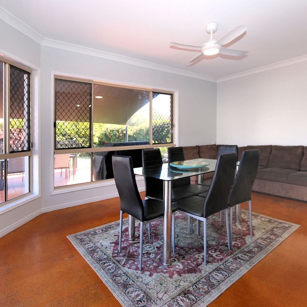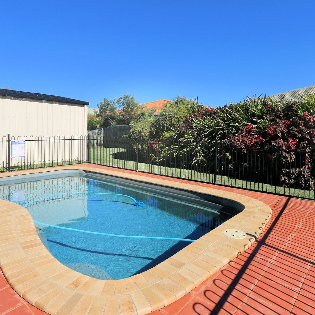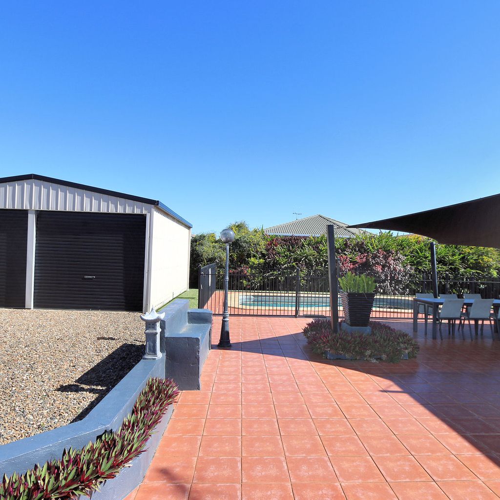 Outdoors, enjoy the in-ground saltwater swimming pool set within a peaceful entertainment area. This space also features a four-burner gas BBQ and additional outdoor seating, perfect for casual meals and family gatherings. The property includes a double lock-up garage and a fully fenced yard, offering both privacy and security.