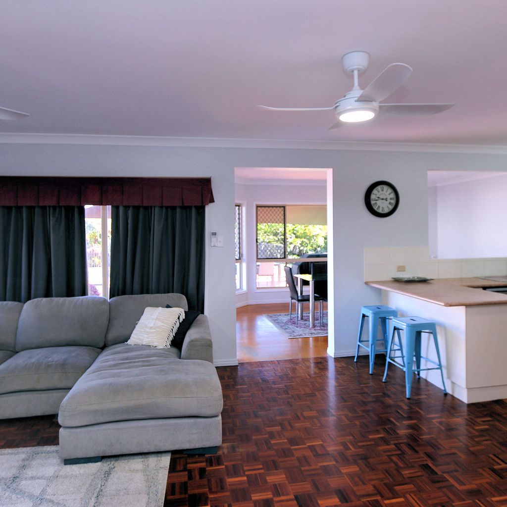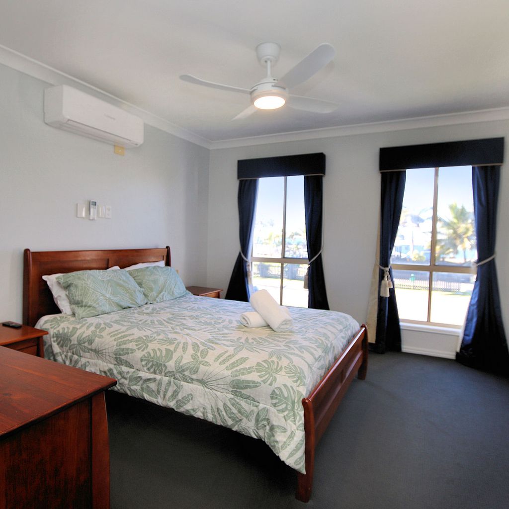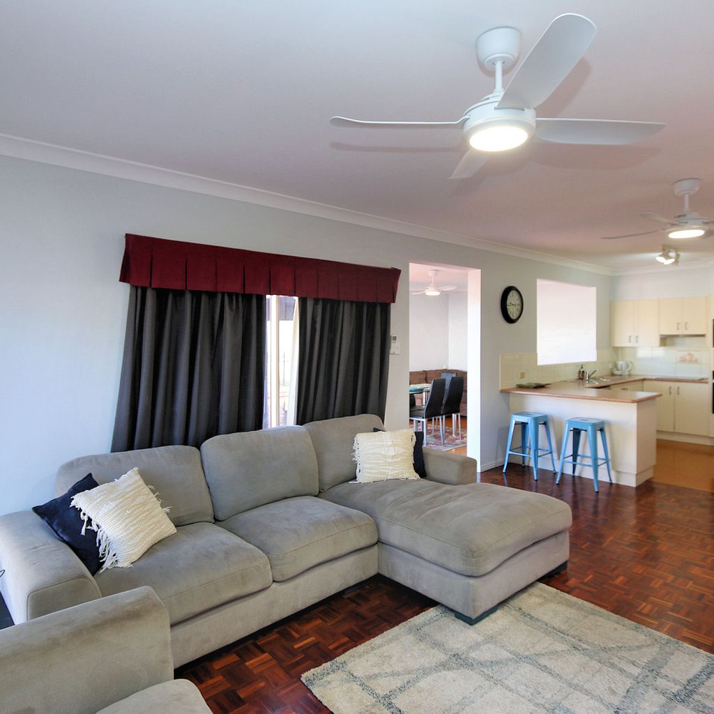 This spacious and well-appointed five-bedroom home is perfect for families or groups looking for a relaxing coastal getaway. The property comfortably sleeps up to 12 guests, featuring three queen beds, one double bed, and four single beds arranged as two bunk beds. The master bedroom and main living area are air-conditioned for comfort, while ceiling fans are installed throughout the home to ensure a cool and breezy atmosphere year-round.