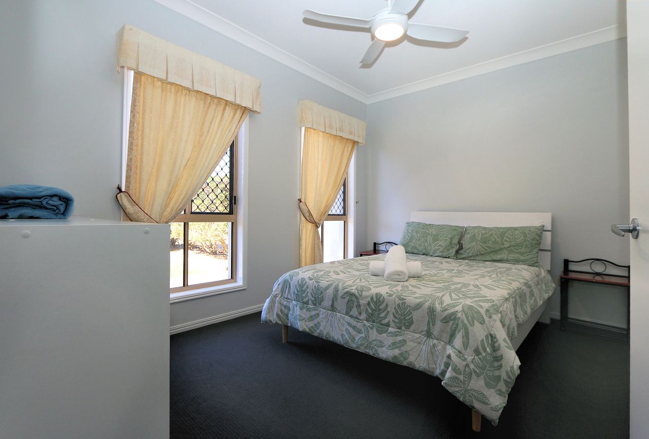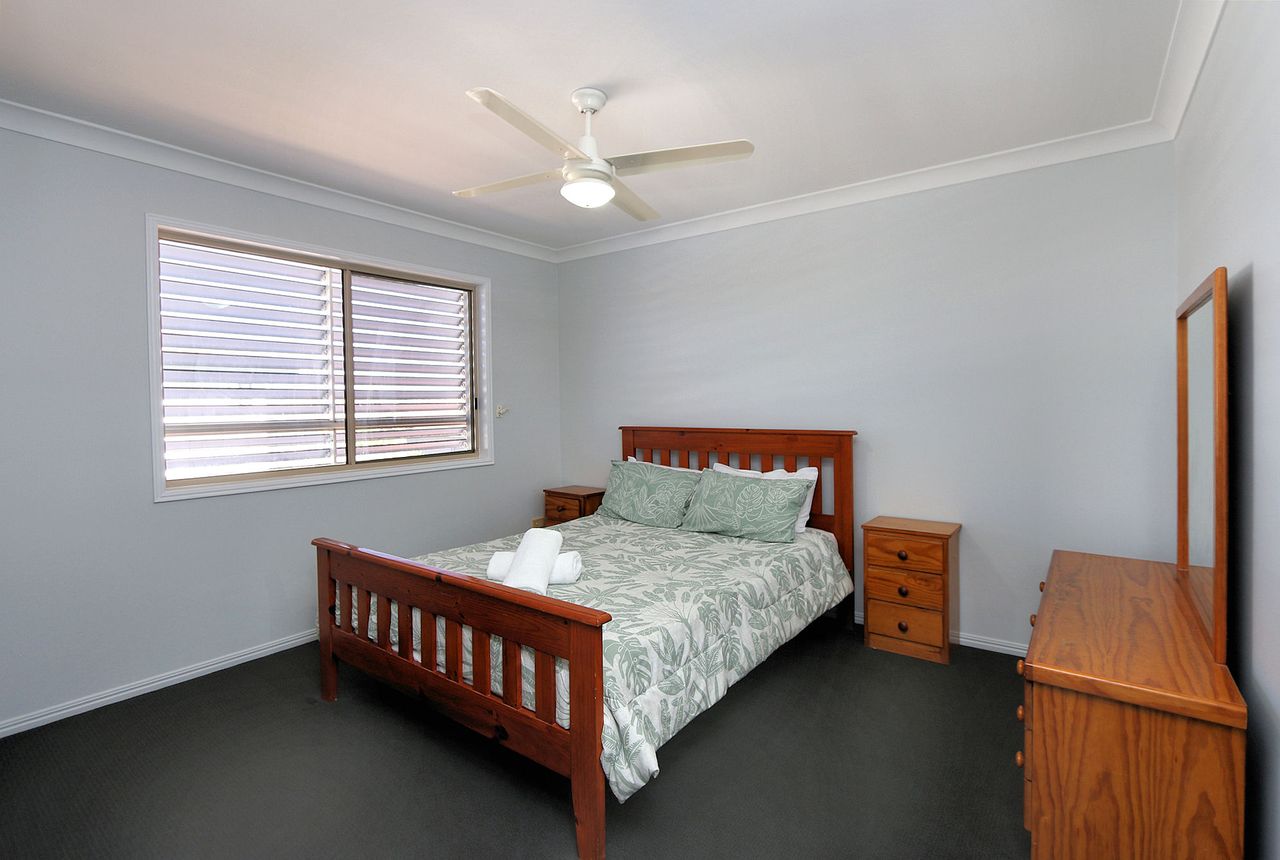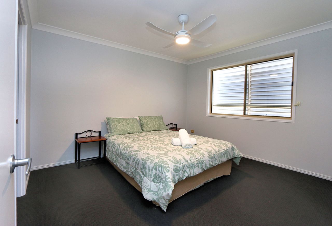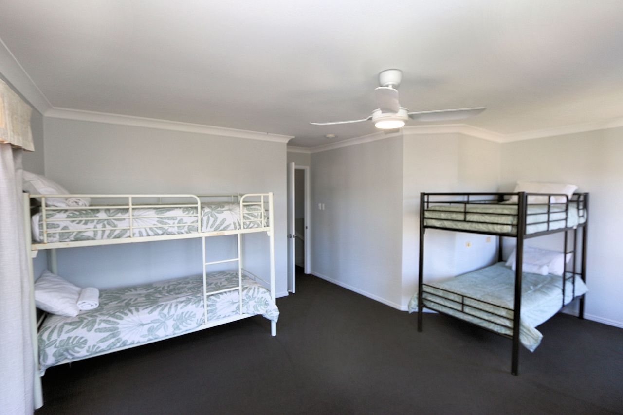 This spacious and well-appointed five-bedroom home is perfect for families or groups looking for a relaxing coastal getaway. The property comfortably sleeps up to 12 guests, featuring three queen beds, one double bed, and four single beds arranged as two bunk beds. The master bedroom and main living area are air-conditioned for comfort, while ceiling fans are installed throughout the home to ensure a cool and breezy atmosphere year-round.