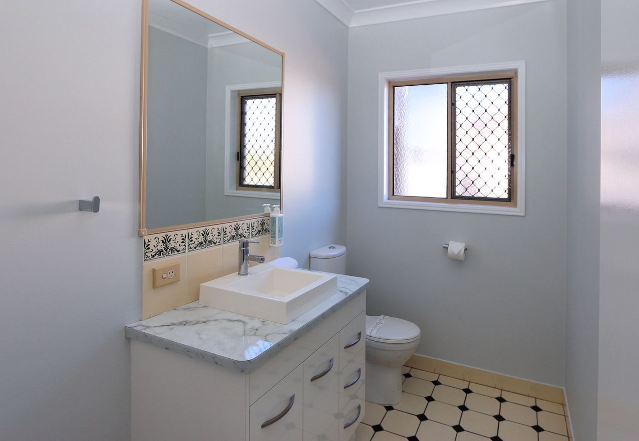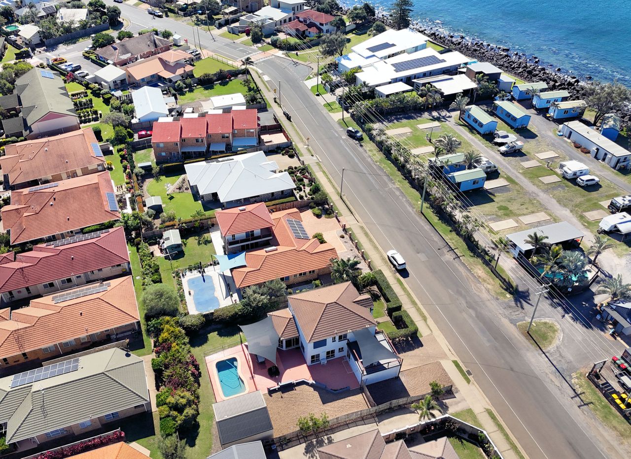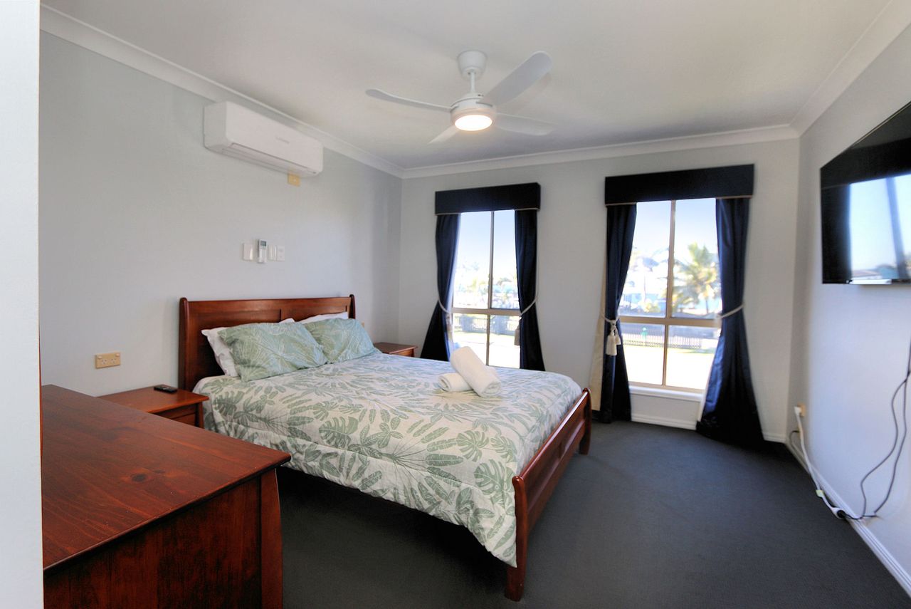 This spacious and well-appointed five-bedroom home is perfect for families or groups looking for a relaxing coastal getaway. The property comfortably sleeps up to 12 guests, featuring three queen beds, one double bed, and four single beds arranged as two bunk beds. The master bedroom and main living area are air-conditioned for comfort, while ceiling fans are installed throughout the home to ensure a cool and breezy atmosphere year-round.