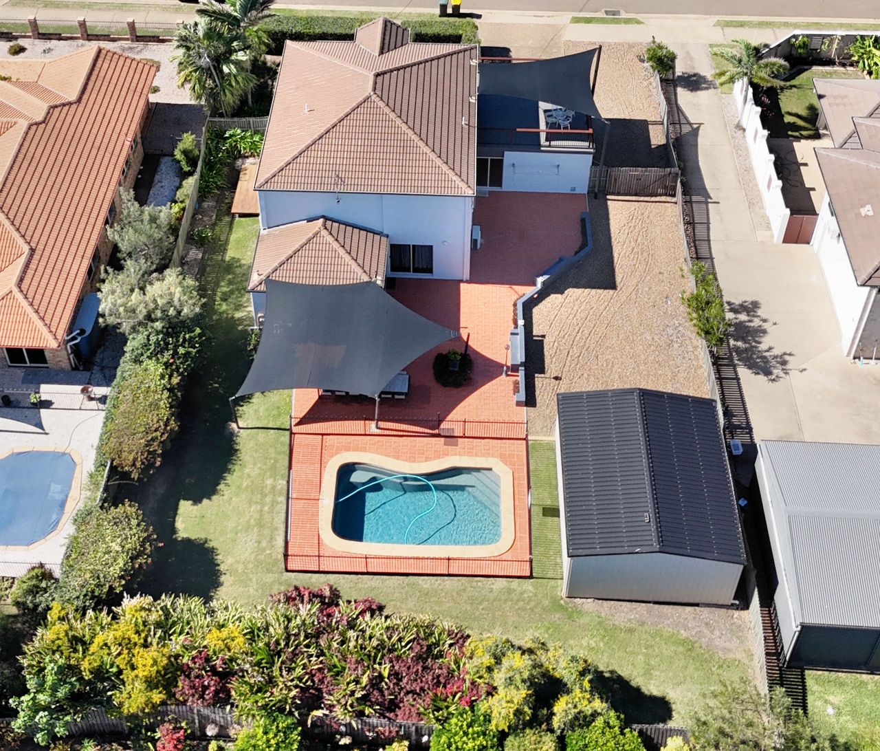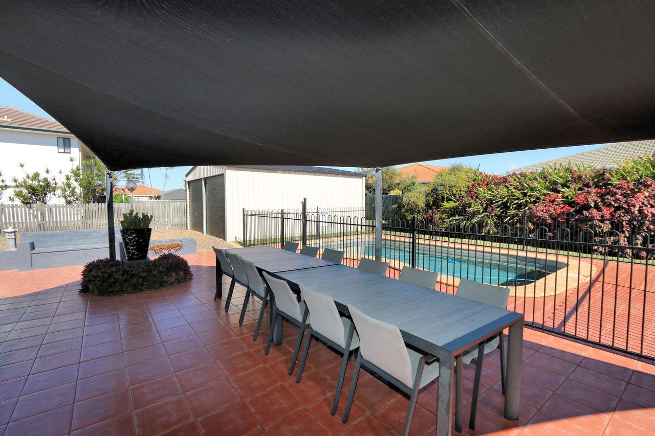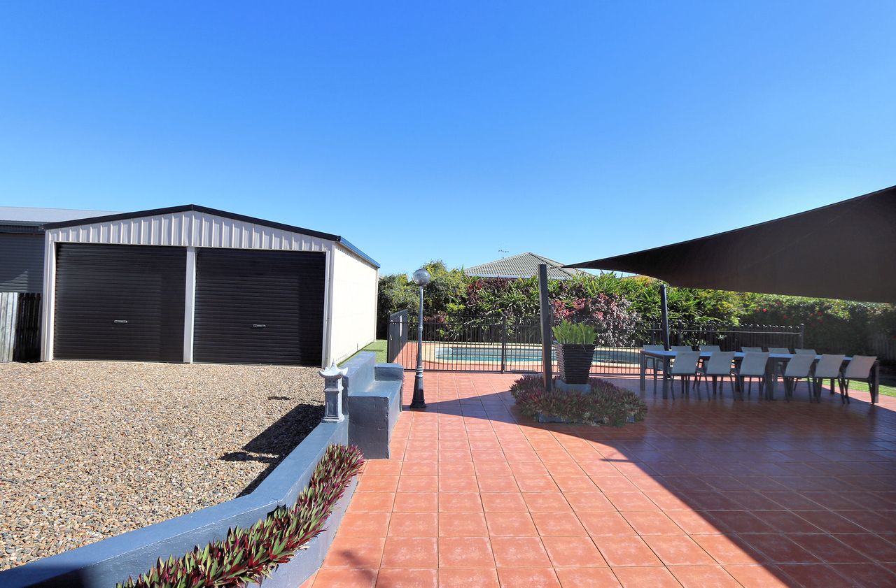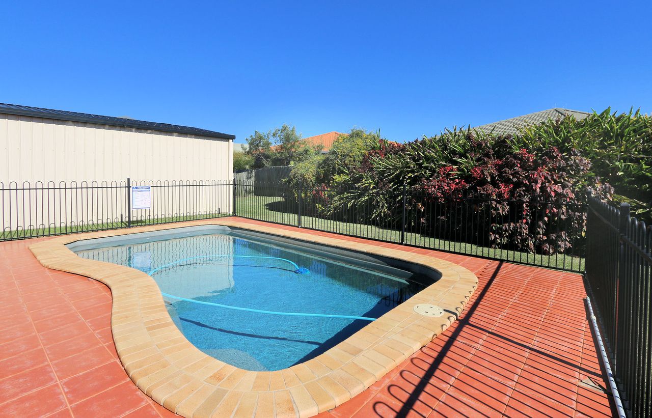 Outdoors, enjoy the in-ground saltwater swimming pool set within a peaceful entertainment area. This space also features a four-burner gas BBQ and additional outdoor seating, perfect for casual meals and family gatherings. The property includes a double lock-up garage and a fully fenced yard, offering both privacy and security.