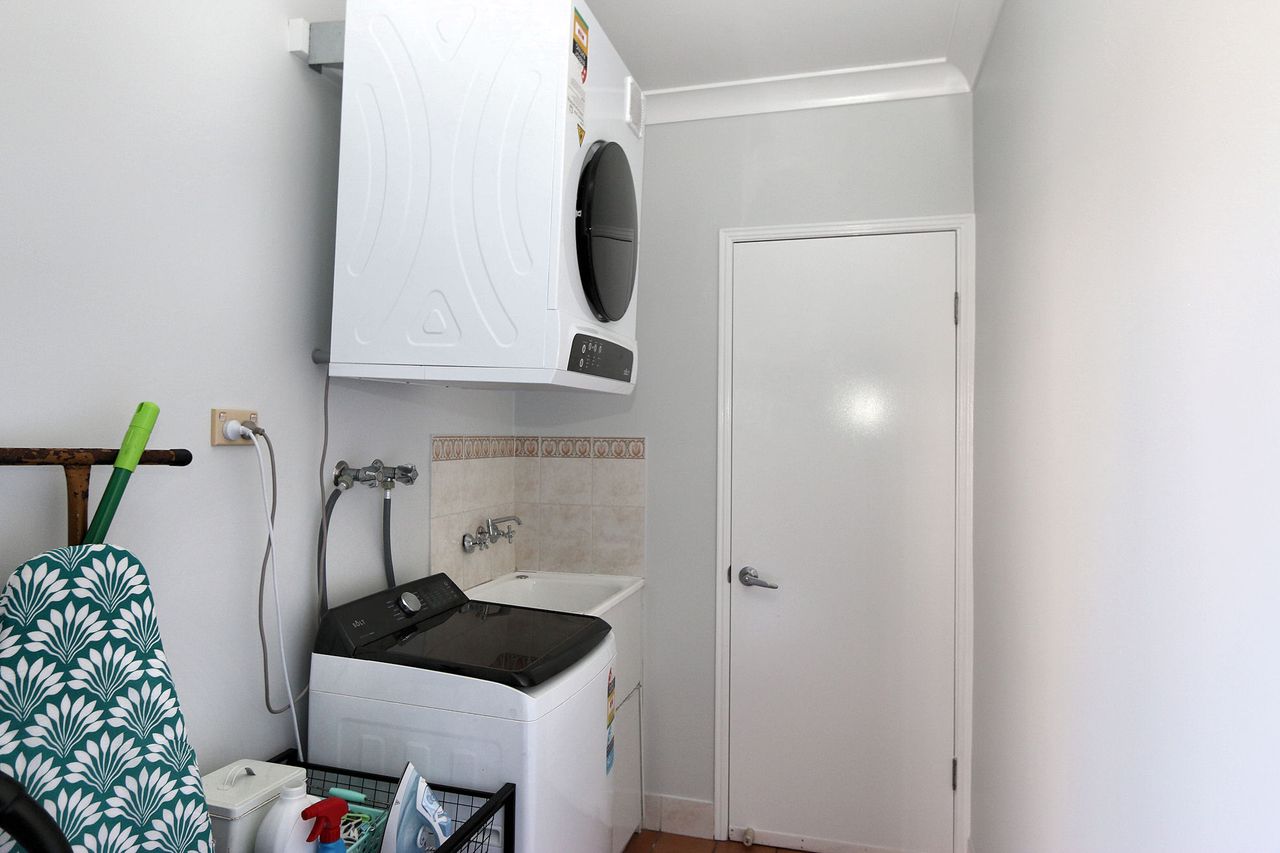 Upstairs, you’ll find a generous tiled deck with an outdoor setting and stunning views of the ocean—an ideal spot for morning coffee or evening drinks. The home is fully self-contained, including a spacious kitchen with a dishwasher, and a laundry area complete with a washing machine and dryer. There are two bathrooms upstairs—one with a bath and shower—and an additional powder room located downstairs for convenience.