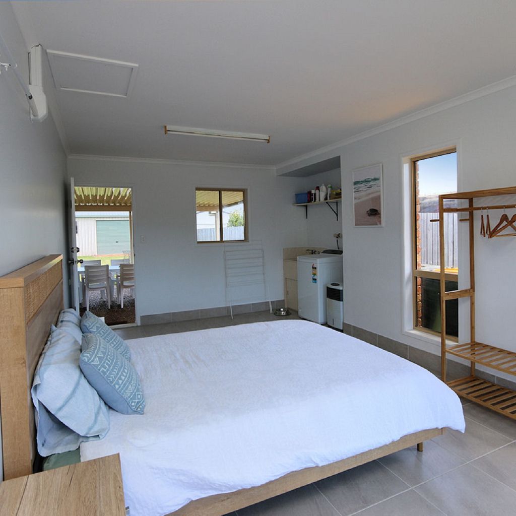 Your pets are welcome to enjoy the fully fenced yard, which provides ample room for play. The main bedroom boasts a king-sized bed and air conditioning for your comfort, while the second bedroom has a queen bed and air conditioning as well. The third bedroom is perfect for younger guests, featuring a single bed, a cot, and a change table. The fourth bedroom, which has its own entrance, includes a queen bed, air conditioning, and conveniently hides the laundry facilities in the corner.