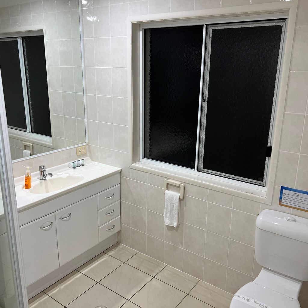 Downstairs, you’ll find two ocean-facing bedrooms. The main bedroom includes a private ensuite with a luxurious spa bath. A second sitting area on the lower level can easily be converted into a third bedroom if needed. Free Wi-Fi is included.