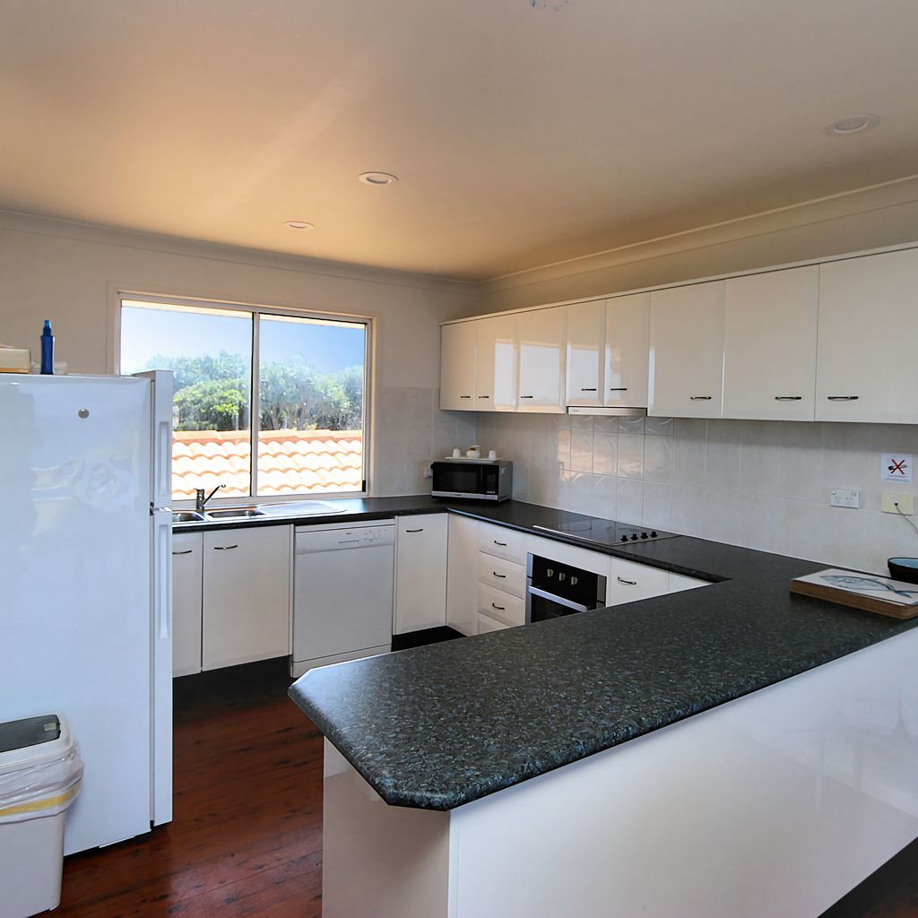 The fully self-contained property comes complete with linen and features a spacious, open-plan upstairs area with polished timber floors and a modern kitchen fitted with stainless steel appliances. The upstairs lounge, kitchen, and dining areas all boast sweeping ocean views, perfect for unwinding or entertaining.