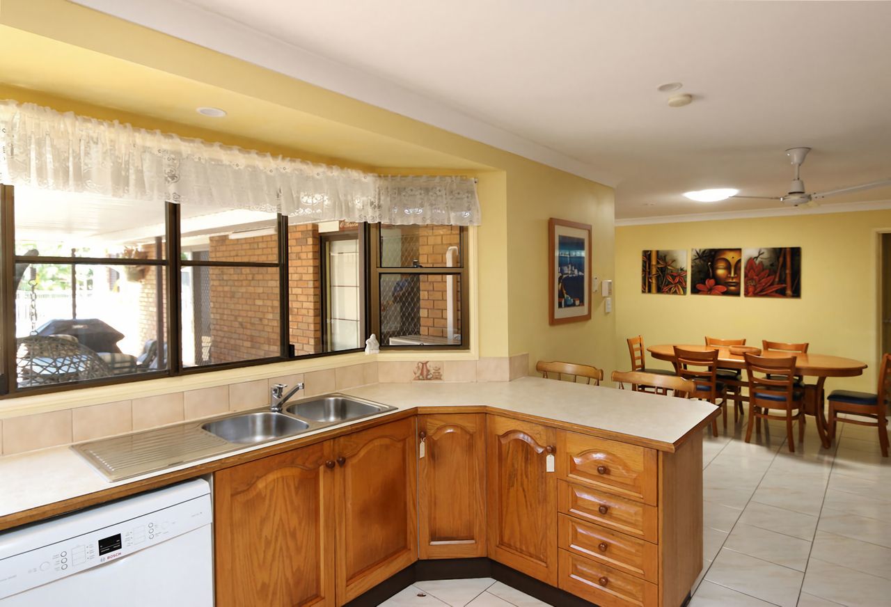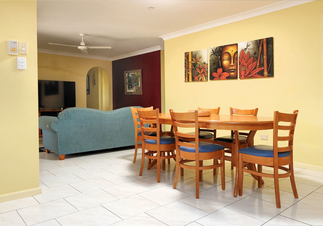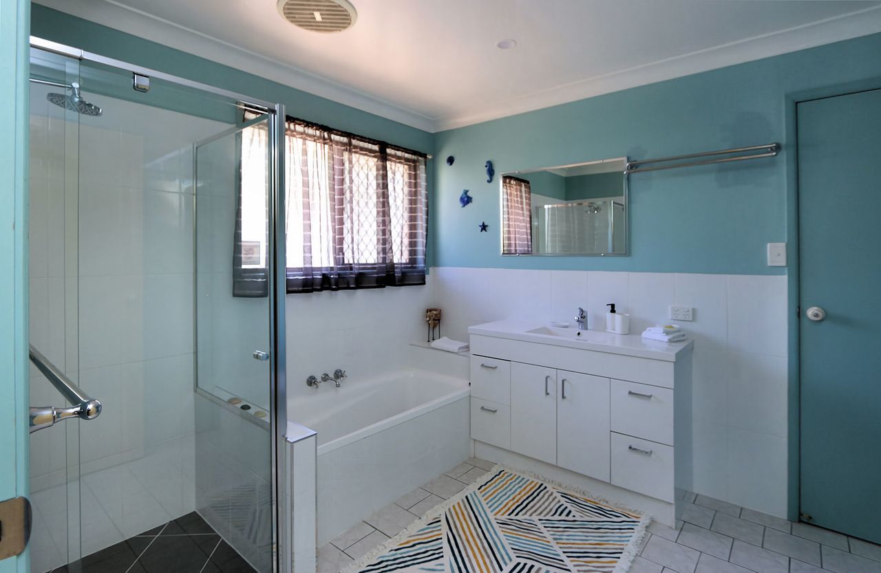 This family friendly holiday home is located in Bargara just a short stroll to Kellys Beach and Archie's Beach. This home boasts 3 bedrooms with queen sized beds, 1 bedroom with a single bed, 2 bathrooms and a pool. The pool is the perfect place to relax and unwind while the kids have a swim. This property welcomes outside pets. There's a large outdoor area with a Bbq for an easy meal after enjoying Bargara's beautiful beaches.