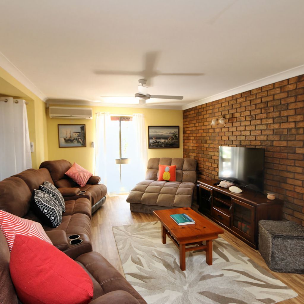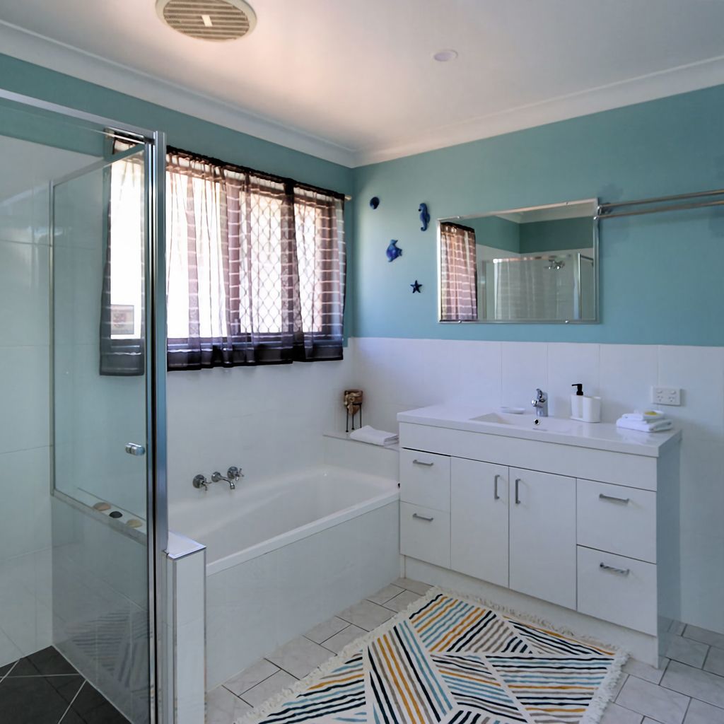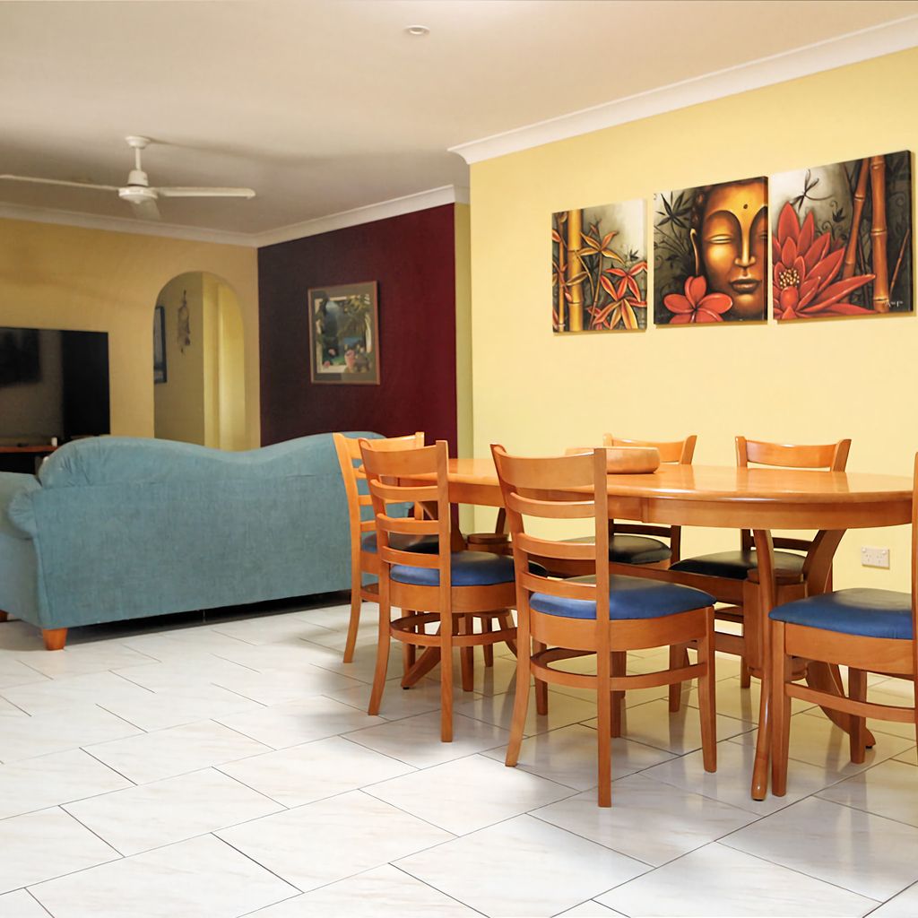 This family friendly holiday home is located in Bargara just a short stroll to Kellys Beach and Archie's Beach. This home boasts 3 bedrooms with queen sized beds, 1 bedroom with a single bed, 2 bathrooms and a pool. The pool is the perfect place to relax and unwind while the kids have a swim. This property welcomes outside pets. There's a large outdoor area with a Bbq for an easy meal after enjoying Bargara's beautiful beaches.