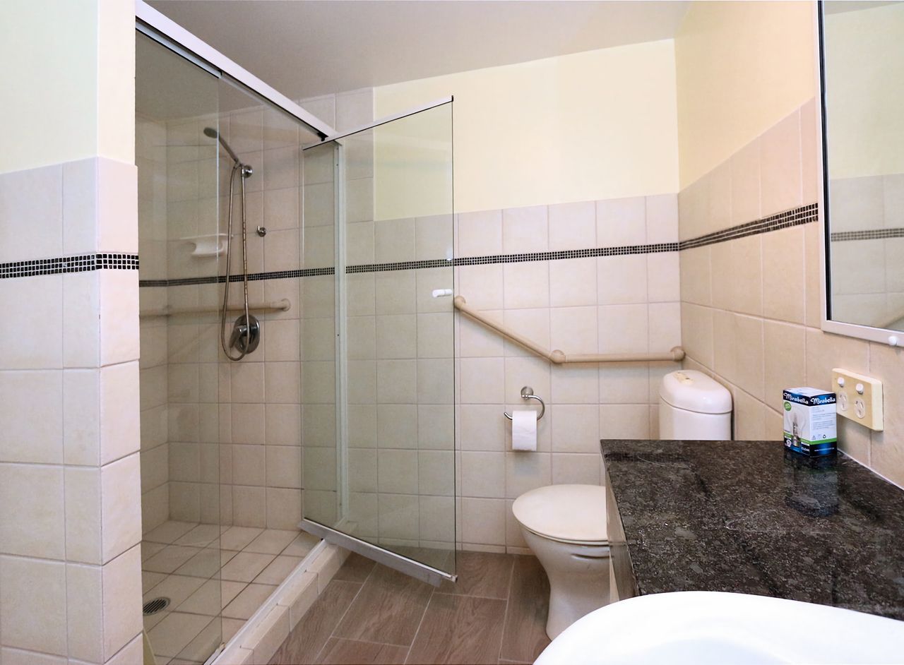 Air-conditioned living area and 3 bedrooms. Open plan kitchen which includes a dishwasher.