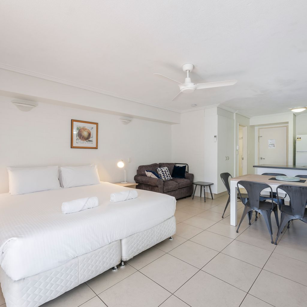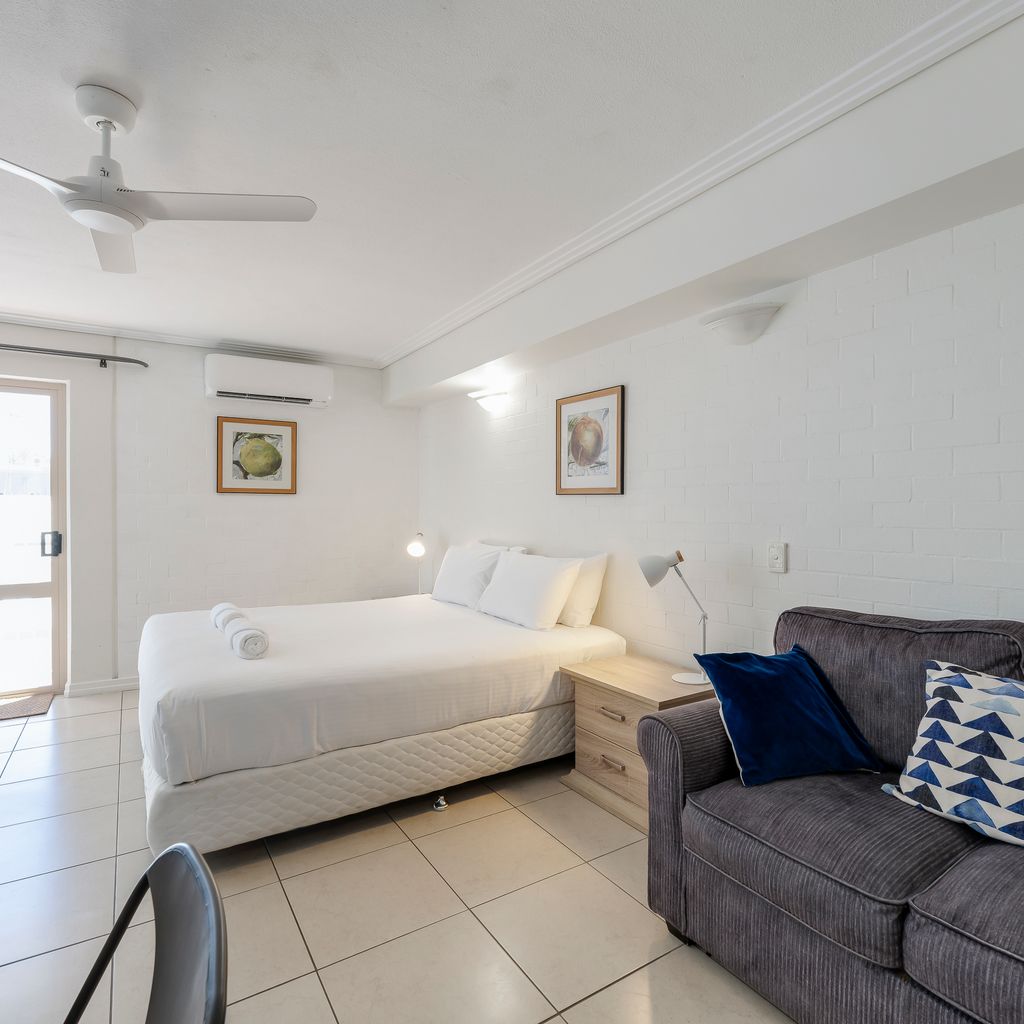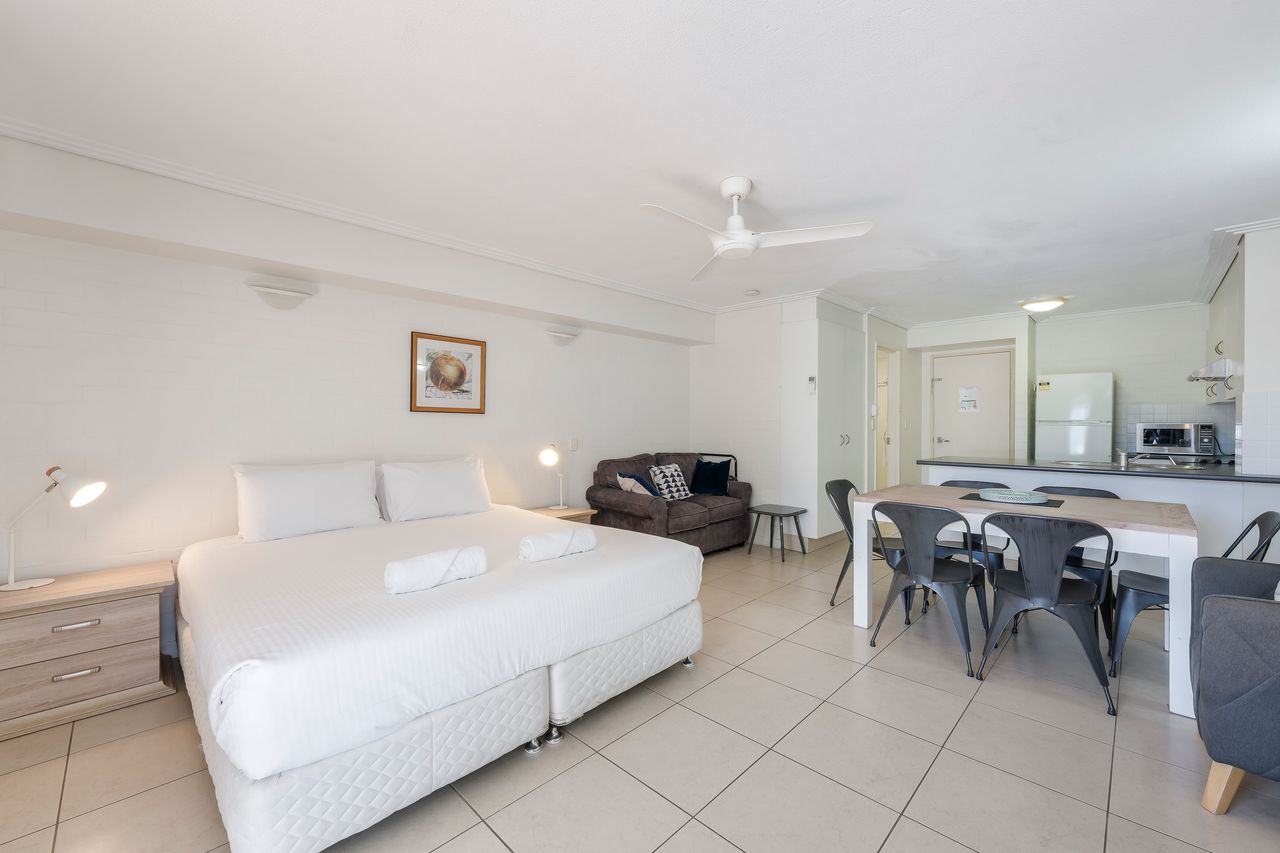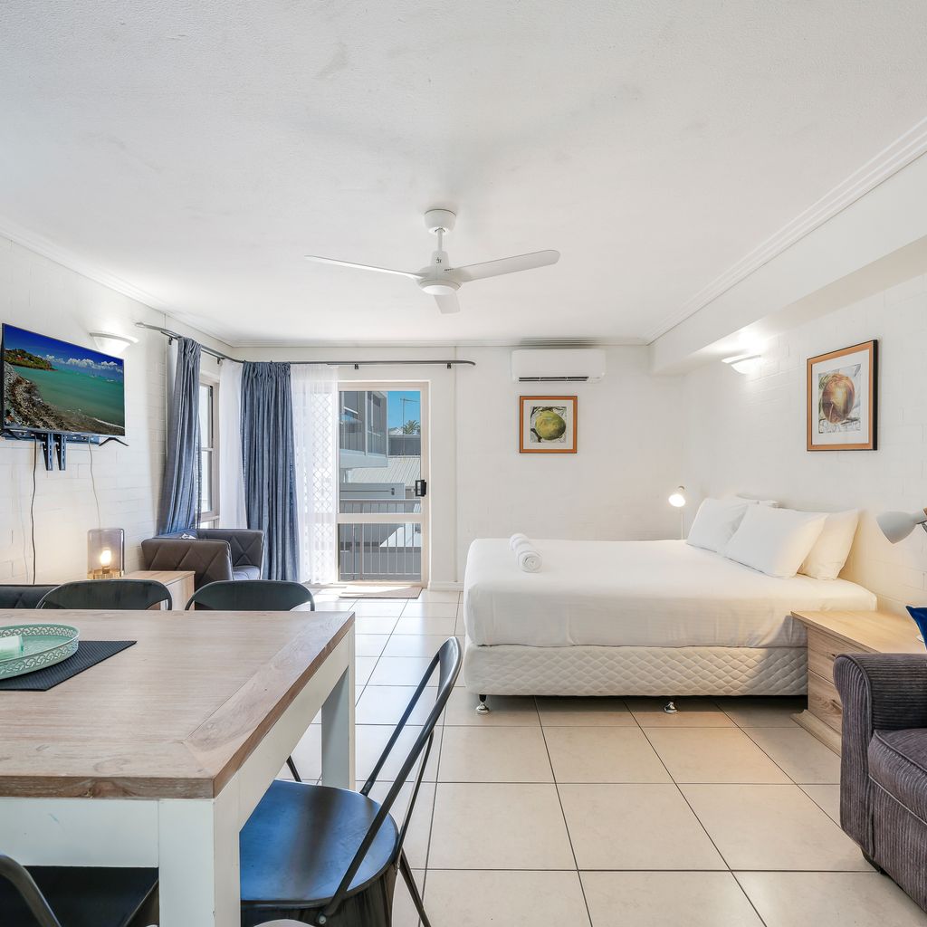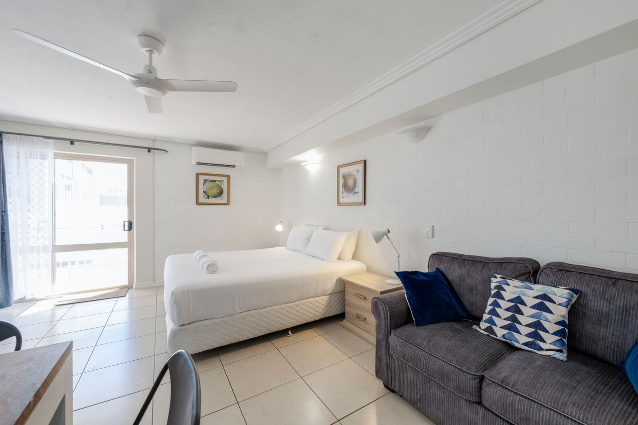This combined studio and upstairs motel apartment offers the perfect setup for families or groups, featuring a king-sized bed downstairs and a queen bed plus two single beds upstairs. The apartment provides all the essentials you need for a relaxing coastal getaway.