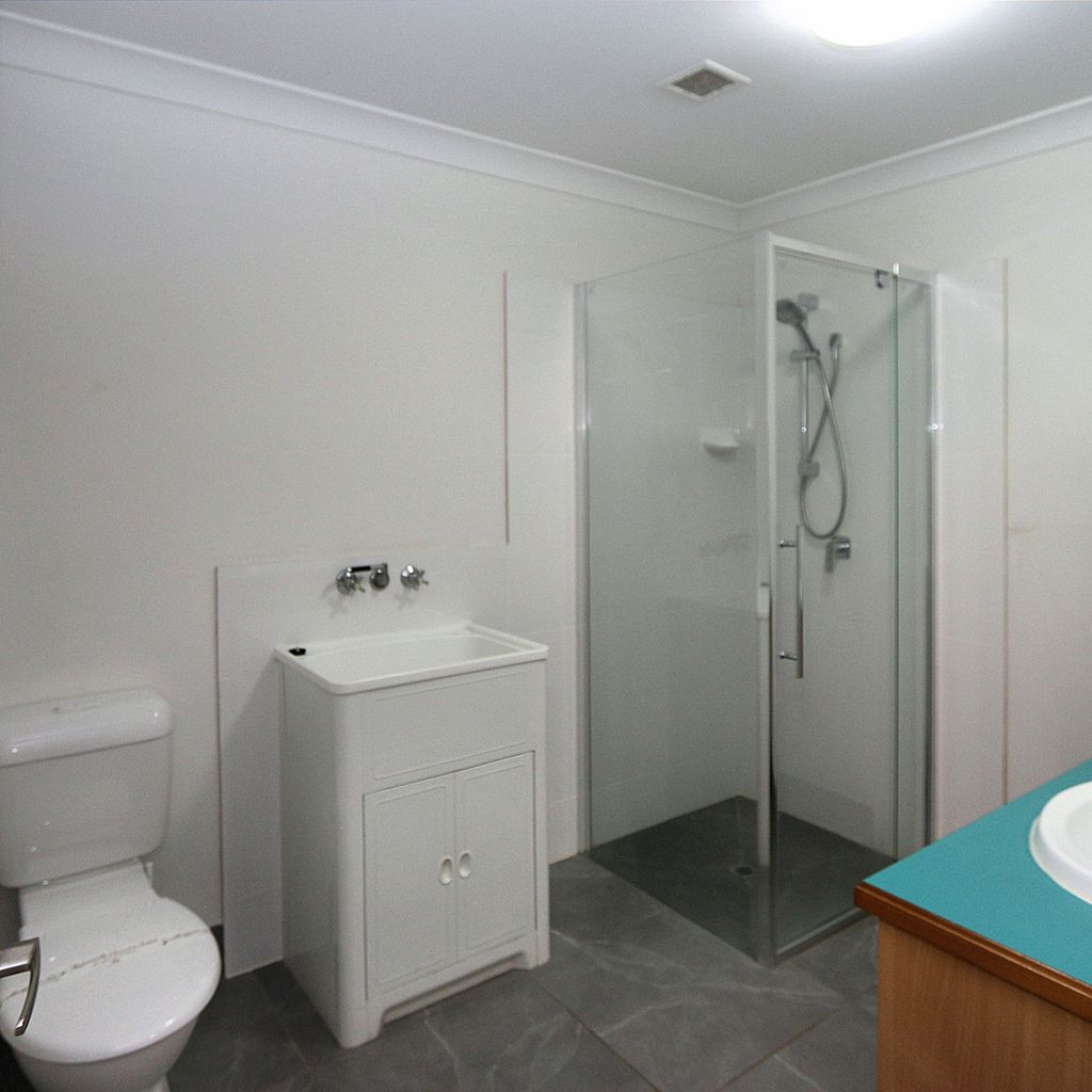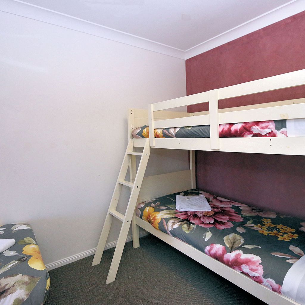 Sleeping arrangements include a separate bedroom with a bunk bed and single bed, plus a queen bed conveniently located in the living area. The villa features a well-equipped kitchen, washing machine and dryer, Wi-Fi, and a modern bathroom with a walk-in shower. Unwind after a day of exploring with a relaxing soak in the spa bath.