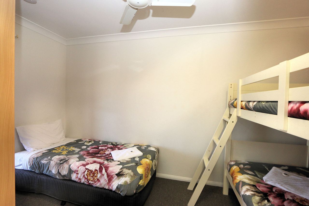 Sleeping arrangements include a separate bedroom with a bunk bed and single bed, plus a queen bed conveniently located in the living area. The villa features a well-equipped kitchen, washing machine and dryer, Wi-Fi, and a modern bathroom with a walk-in shower. Unwind after a day of exploring with a relaxing soak in the spa bath.